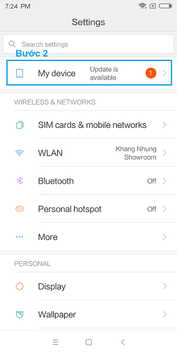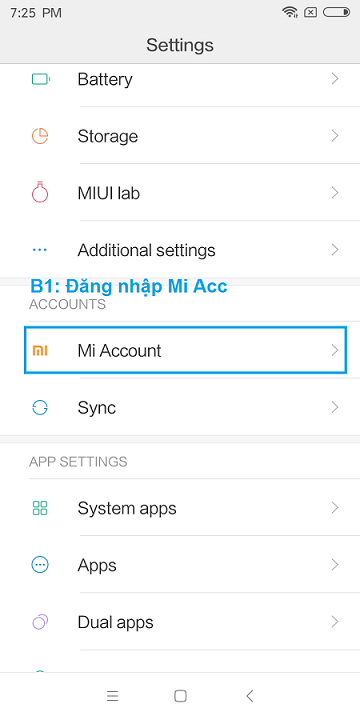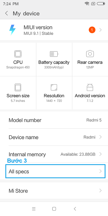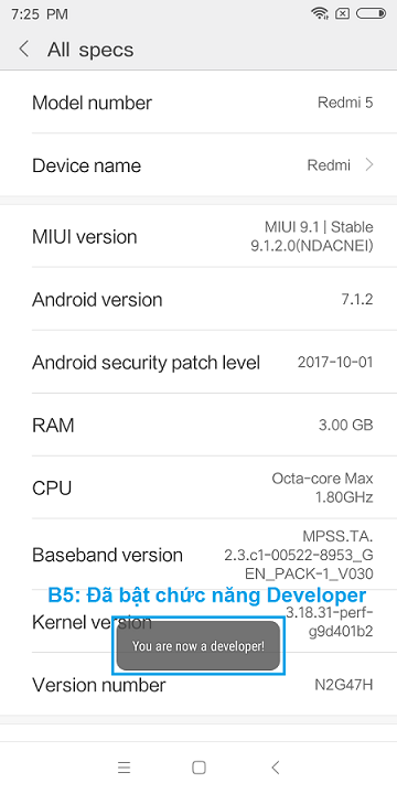Bước 2 : Gắn tài khoản mi vào điện thoại - đăng nhập tk mi vào điện thoại trong phần Setting/Mi account sau đó bắt đầu bật chế độ Developer cho điện thoại theo hướng dẫn như ảnh dưới : (Bấm 7- 10 lần vào Miui Version để bật Developer) , nếu không tìm thấy mục about phone - ta kéo lên trên cùng trong mục setting - chọn vào my devices , chọn tiếp vào all specs - trong đó sẽ có miui version ta bấm liên tục 7 -8 lần vào đó để bật chế độ developer option (bấm đến khi hiện chữ "you are now a developer..." hoặc "no need...." là được, ta làm tiếp bước bên dưới)